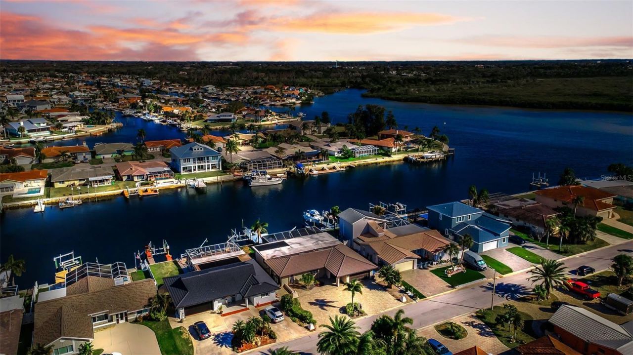 Experience the ultimate Gulf Coast lifestyle in this beautifully updated waterfront pool home located on one of the widest and deepest canals in Gulf Harbors. With direct access to the open Gulf and private beach privileges, this property offers a rare combination of serious boating capability and exclusive beachfront enjoyment.Situated on a deep-water canal (approximately 15-20 feet), this home accommodates large vessels with ease. The expansive canal width allows for a 50+ foot yacht to be positioned perpendicular to the seawall. The composite dock system includes a 10,000 lb boat lift with recently replaced carriage and two new motors, plus a floating dock for added versatility.The outdoor living space is designed for year-round enjoyment. The pool and spa were refinished in 2018 and are complemented by travertine pavers and tile throughout the pool area. State-of-the-art pool equipment includes both heat pump and solar heating. A 20/20 screened enclosure surrounds the pool area, offering exceptional protection while maintaining open views. An outdoor shower completes the coastal experience.The 2025 remodel enhanced both function and curb appeal. The double driveway provides expanded parking capacity, and pavers surround the home extending to the seawall. All gutters are routed underground for improved drainage. Additional updates include a new flat roof (2017), new garage door opener (December 2025), blown-in attic insulation (2017) for energy efficiency, new water softener and whole-house filtration system, and power blackout shades in the main living area.Two separate water meters service the property-one dedicated to the home and a second for landscape, pool, and dock use-helping reduce sewer charges. An in-ground propane tank is installed and plumbed to the home (currently not in use).In addition to exceptional boating access, residents have the option to join the private Gulf Harbors Beach Club, offering sandy shoreline, pavilions, grills, and some of the most spectacular sunset views on Florida's west coast.This is more than a waterfront home. It is a deep-water boating property with exclusive Gulf beach access-an uncommon and highly desirable combination.
